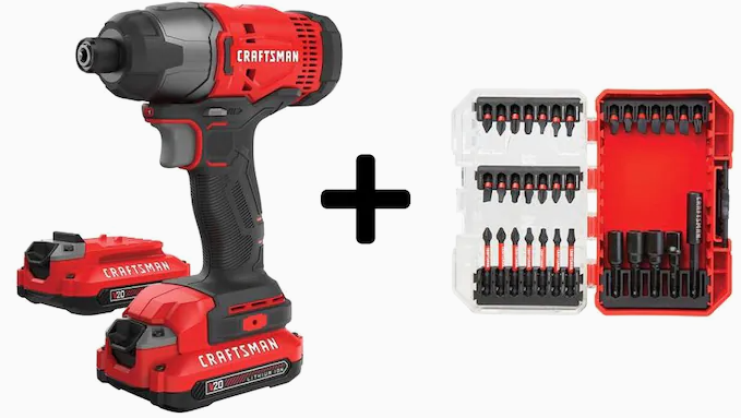 CRAFTSMAN 20V MAX Impact Driver (2-Batteries Included) + 33PC Impact Driver Bit Set